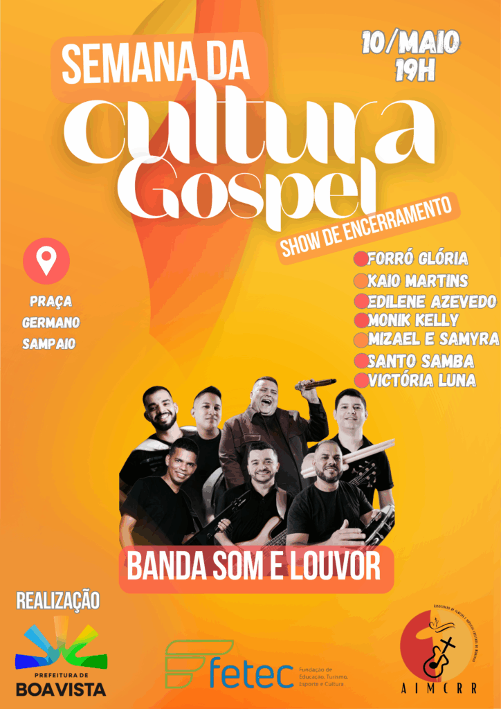 Com apoio da prefeitura, neste sábado, 10, ocorre o encerramento das programações da 20ª edição da Semana da Cultura Gospel em Boa Vista, iniciada no último dia 3. O evento será no Palco Aderval da Rocha, Parque Germano Sampaio, a partir das 19h, com shows de artistas locais e da banda convidada, Som e Louvor. Criado em […]