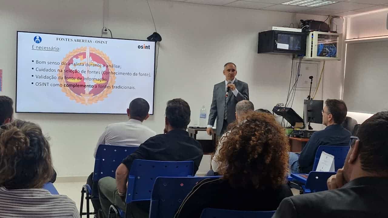 Durante o encontro, foram apresentados conceitos de OSINT (Open Source Intelligence), técnica baseada na utilização de dados obtidos em fontes públicas, como redes sociais, bases oficiais e conteúdos da mídia. Essas informações, quando analisadas de forma adequada, contribuem para a construção de linhas investigativas e aprofundamento de apurações.