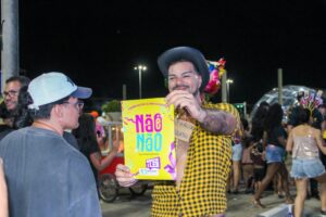 A assessora do Chame, Magdalena Chaffer, destaca uma das principais iniciativas desenvolvidas pelo centro durante a folia: a divulgação da campanha “Não, é não!”, em reforço à Lei nº 1.993/2024, que determina a obrigatoriedade da divulgação de campanhas de combate ao assédio e à importunação sexual contra mulheres em shows e eventos patrocinados pelo poder público.