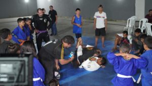 Miguel também ressaltou o papel social do jiu-jitsu e como a modalidade pode ajudar crianças e adolescentes a seguirem um caminho diferente, longe de situações de risco. Apesar da pouca idade, o atleta falou com maturidade sobre derrotas, persistência e disciplina, reforçando a mensagem passada durante a atividade: a de que o esporte forma não só campeões nas competições, mas também na vida.