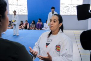 Uma das modalidades em destaque é o caratê, que integra a programação do polo Buritis. A instrutora Nayandra da Silva destacou que o momento permite o primeiro contato de muitos alunos com a luta e com outras práticas oferecidas no CCJuv.