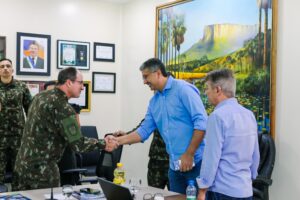A reunião marcou ainda a primeira visita institucional de 2026 do comandante do CMA ao Governo de Roraima. Participaram do encontro o vice-governador Edilson Damião, o comandante do Exército em Roraima, general de brigada Roberto Pereira Angrizani e o chefe da Operação Acolhida, general Santos, além de representantes da cúpula da segurança pública estadual.