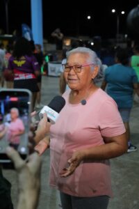 Com muita animação e energia, a aposentada Elizabeth Moura, de 73 anos, também participou do aulão. Para ela, manter-se ativa é essencial para uma vida longa e saudável.