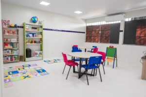 Além da reforma estrutural, a unidade foi mobiliada com carteiras escolares novas, armários, quadros brancos, freezer e geladeira para copa e cozinha, além de climatização em todas as salas de aula.
