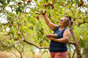 Quem tem acompanhado esse progresso é a aposentada Irânia Almeida da Silva, de 60 anos, que decidiu morar na região durante o período de pandemia da Covid-19. E é do seu quintal que ela extrai sementes de urucum, fruto que serve de matéria-prima para o famoso tempero colorau, que ela comercializa.