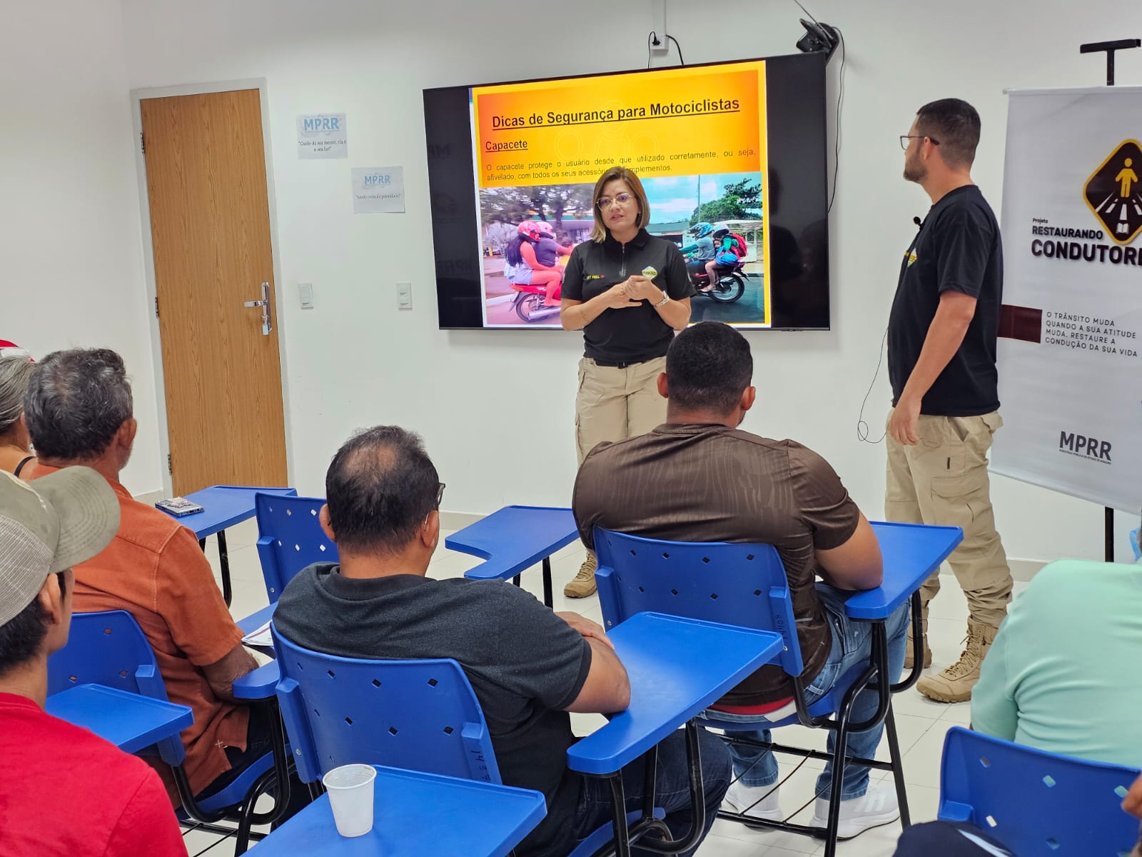 Nesta quarta-feira, 04 de março, o Ministério Público do Estado de Roraima (MPRR) realizou a segunda capacitação do projeto “Restaurando Condutores”. A iniciativa tem como objetivo promover ações educativas voltadas à conscientização de motoristas que cometeram infrações penais de trânsito, reforçando a importância da responsabilidade e do respeito às normas de circulação para a prevenção de acidentes e preservação de vidas.